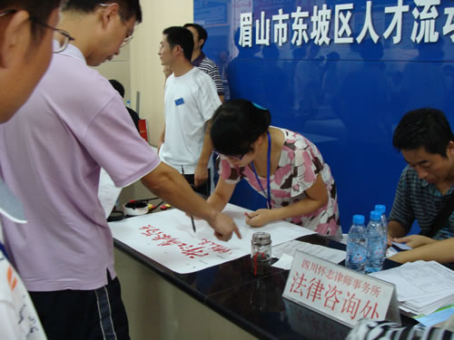 眉山人才网/洪雅人才网/彭山人才网/仁寿人才网/青神人才网/丹棱人才网/四川人才网/乐山人才网/眉山劳动力市场 眉山市东坡区人事局与东坡区劳动和社会保障局联合,于2010年7月30日(星期五)成功举办“2010年高校毕业生大型招聘会”,区人事局及区劳动和社会保障局领导亲临现场视察。此场招聘会共有120余家用人单位参会,提供岗位近2000个,参会人员超过3500人次,有力促进高校毕业生就业,同时为我区企业提供稳健的人才支撑。